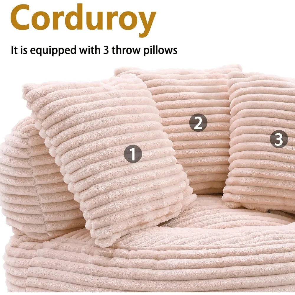 - 【Luxurious Corduroy Design】 Crafted with durable corduroy fabric in crisp,this round lazy sofa combines stain-resistant texture with cloud-like softness. Armrests and 3 decorative pillows create sophisticated lounging experience.