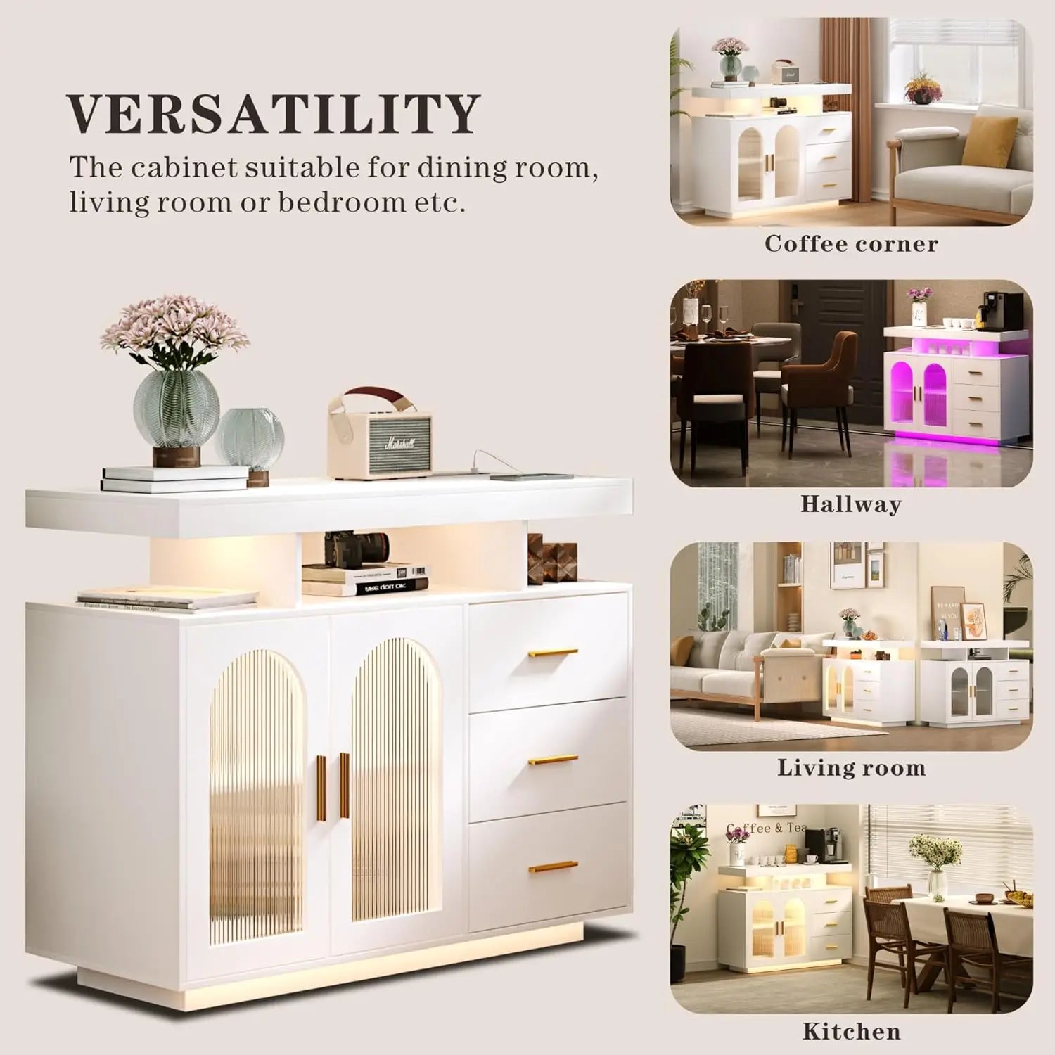 Elevate your dining space with the XMSJ Customizable Sideboard Buffet featuring a built-in charging station.