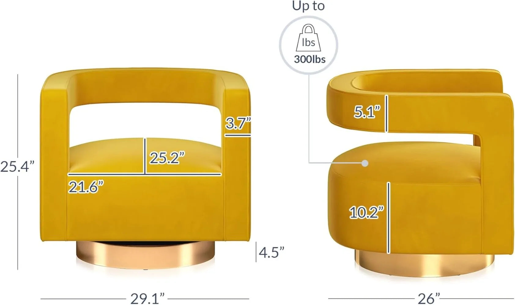 - Durable construction Built on a solid wood frame with a curved back for ergonomic support, paired with a steel rotating base that supports up to 300 lbs.