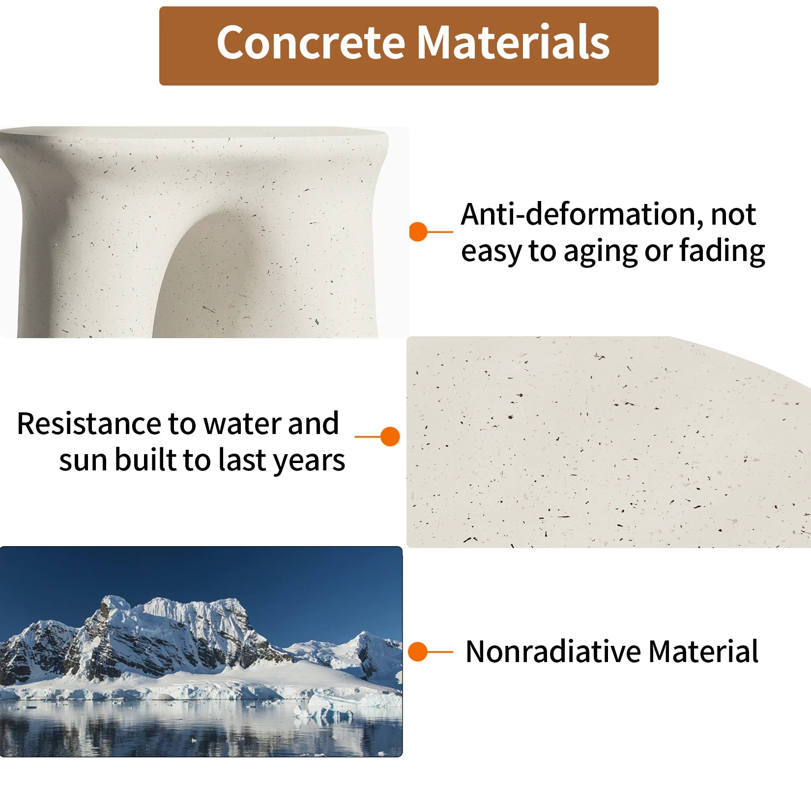 - Off-white finish resists scratches and complements modern décor, while the durable concrete thrives in both indoor and outdoor settings.