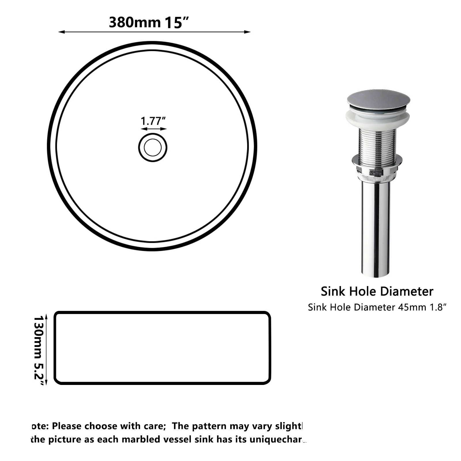 ZAPPO Bathroom Vessel Sink With Drain Bathroom Stone Resin Washbasin Round Above Counter Bowl Sinks for Bar Hotel (No Faucet)